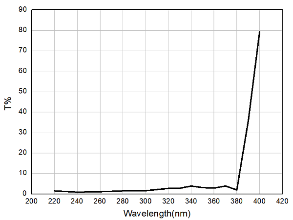 防紫外線性能優(yōu)異,阻隔波段為200-380nm,阻隔率大于99%;